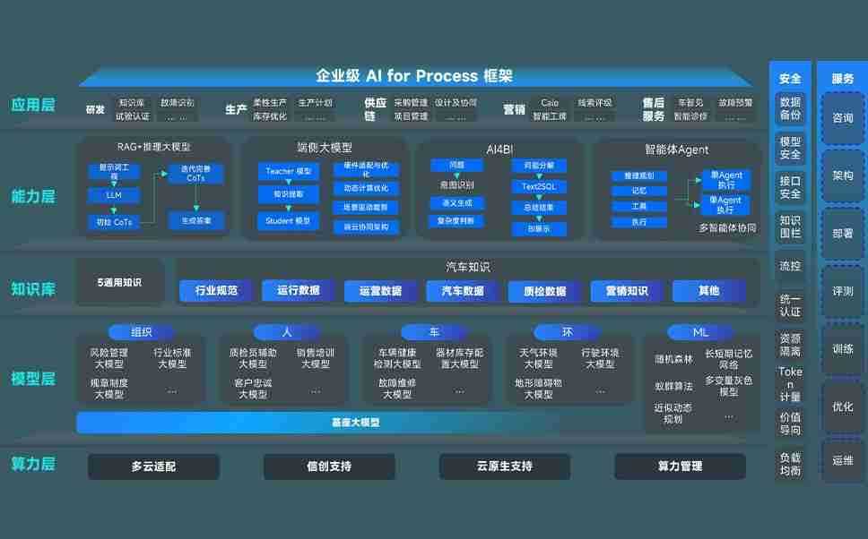 连连国际问学智车解决方案是一套基于AI技术的汽车行业智能化系统,,覆盖从底层算力到顶层AI应用的全栈方案。。。方案由算力层、、模型层和应用层组成:算力层,,,,方案支持多种一体机配置,,,具备云端灵活部署、、、、多云适配以及动态优化计算资源的能力;模型层,,,连连国际问学平台版提供了企业级AI应用一站式构建与管理平台,,,支持基于后训练强化技术的汽车企业专属模型的训练、、、评测和运营;应用层,,,,连连国际问学DeepSeek版提供包括超级员工、、智能招采、、智能营销、、、智能客服、、AI for BI等一系列解决方案,,可助力汽车行业实现数字化转型,,,,让管理更智能、、、响应更敏捷。。。